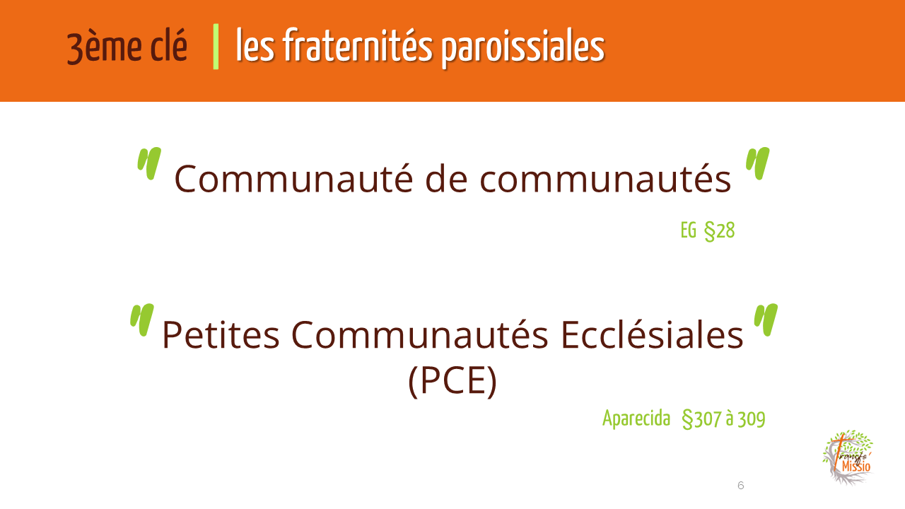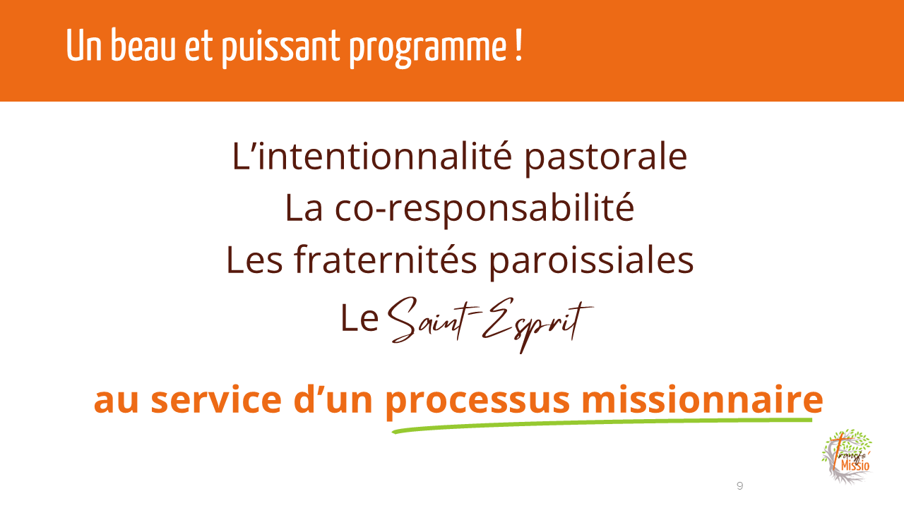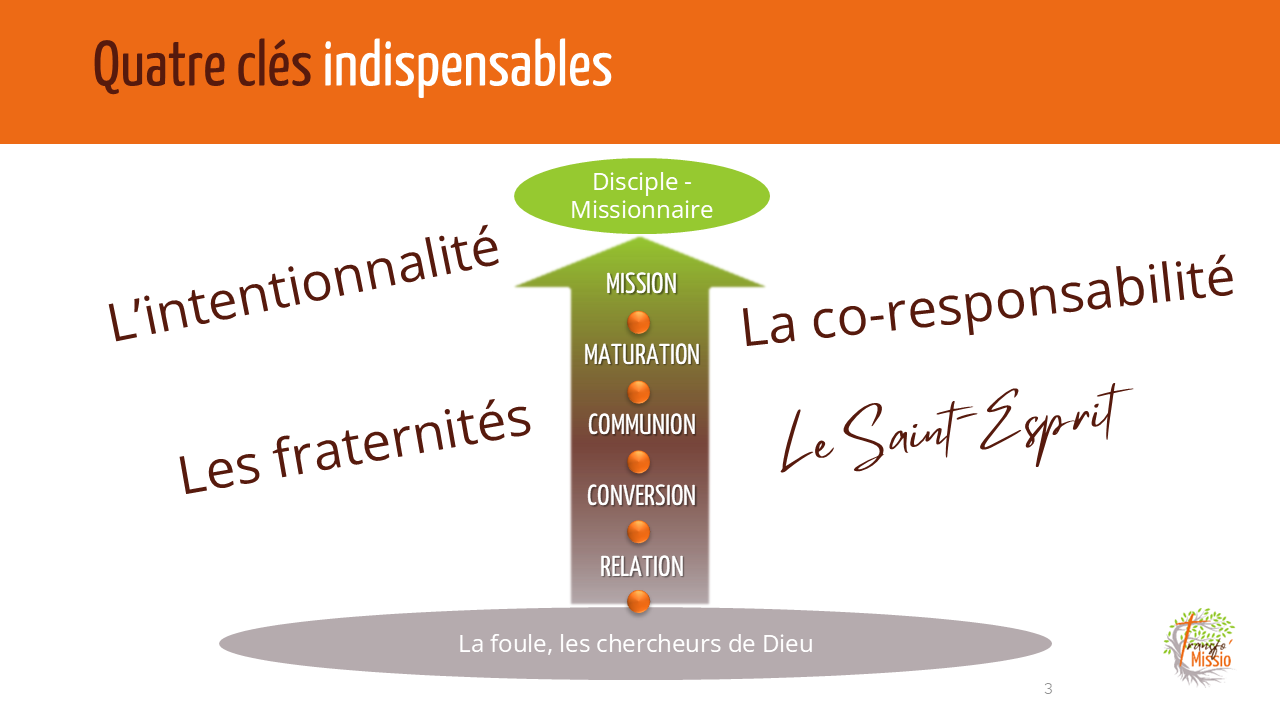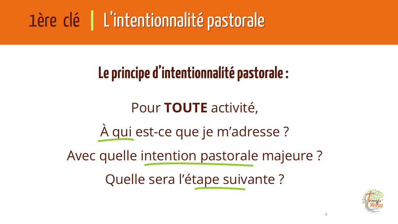 Le travail d’approfondissement de la TP permettra aux personnes concernées par la TP de découvrir et comprendre et maîtriser les 4 clés d’une pastorale résolument missionnaire, l’Intentionnalité pastorale (ne jamais perdre de vue nos objectifs en matière pastorale), la Synodalité (exercer la coresponsabilité de tous, prêtres et laïcs), les Petites Communautés Ecclésiales (faire de la communauté paroissiale une « communauté de communautés de vie chrétienne », des communautés de vie fraternelle, d’apprentissage, et d’encouragement), et le Saint Esprit ( Celui qui inspire, qui donne la force et l’audace, celui qui fait de chacun des fils et des filles de Dieu).